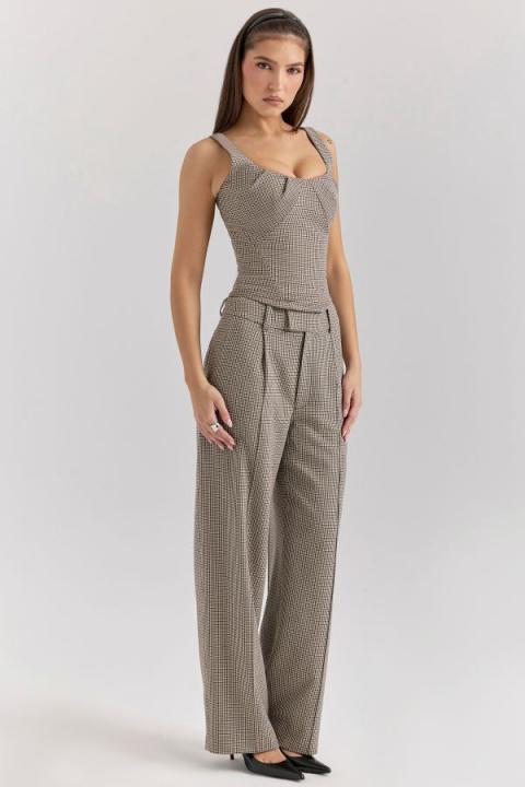 Meet ‘Hayden’, our impeccably tailored trousers that bring modern elegance to classic cuts. These high-waisted, wide-leg trousers are designed to elongate your silhouette and provide a flawless fit that drapes beautifully. The sleek tailoring and clean lines deliver sophistication, while the structured cut adds a timeless appeal to your wardrobe. Made with Viscose, a natural fibre made from regenerated cellulose. Known for its smooth and luxurious properties. Team yours with:Pair ‘Hayden’ with the coordinating ‘Selma’ corset top for a powerfully polished look, or style them solo with a crisp shirt for effortless refinement. Underwear solution:We’d recommend a tonal thong or seamless briefs. Designed For House Of CBSee more Trousers here Regular Length: Approx 111cm Inside Seam Length of Regular Trousers: Approx: 79cm Model is 5 ft 8 and wears size XS Item runs true to size chart and is cut to suit our size chart. Please refer to our size chart for the best fit. Do not size up or down. Colour may vary due to lighting on images. The product images (without model) are closest to the true colour of the product. Material Stretch Factor: Little Stretch To wear Nights out in the city, glamorous dinner dates, brunch with the girls, rooftp cocktails. Care Gentle Dry Clean Only
