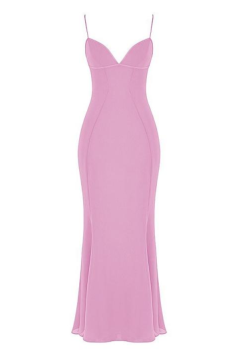 Our ‘Loren’ maxi dress is an elegant choice for glamorous events or the cocktail hour, cut from a lightweight georgette that slinks over the hips to accentuate your curves. The peaked cups lift and shape the bust for amazing cleavage. The rouleau shoulder straps and contouring seams are elegantly trimmed in a delicate satin for a feminine finish and the skirt falls freely from the knee to a softly pleated and floaty hem. It has a zip to the back for easy on and is fully lined for a smooth finish. Wear yours with our ‘Lucent’ mules . The ‘Regular Cup’ option suits cup size A-C whilst the ‘Bigger Cup’ option suits cup size D-E. WHERE TO WEAR : Romantic date nights, Weddings, Champagne bars, Glam functions and events. TEAM YOURS WITH : ‘Lucent’ mules and a tonal clutch. UNDERWEAR SOLUTION : No bra required as it’s cupped and lined. Made from georgette and light silky satin. Fully lined. Stretch Factor: 1/3 Designed For House Of CBShop more Maxi Dresses hereDress Length: Approx 153cm Materials: Rigid Georgette Gentle Dry Clean Only Model is 5 ft 8 and wears size XS Colour may vary due to lighting on images. The product images (without model) are closest to the true colour of the product. Item runs true to size chart and is cut to suit our size chart. Please refer to our size chart for the best fit. Do not size up or down.